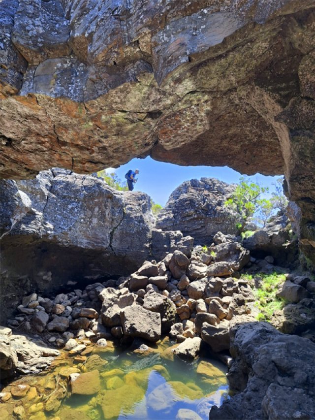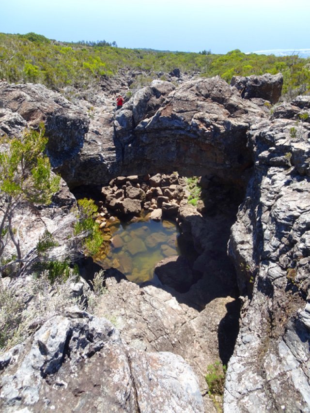 Une arche en bordure de bassin profond, sans doute issu de l'effondrement du tunnel de lave qui l'entourait.