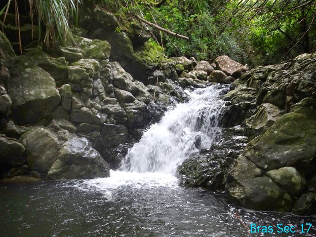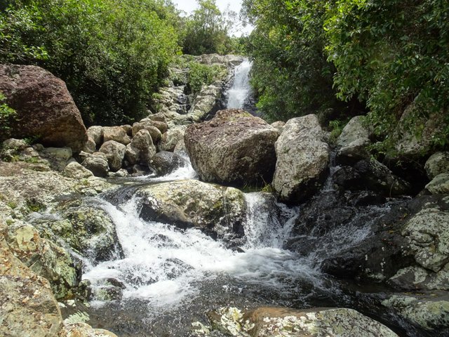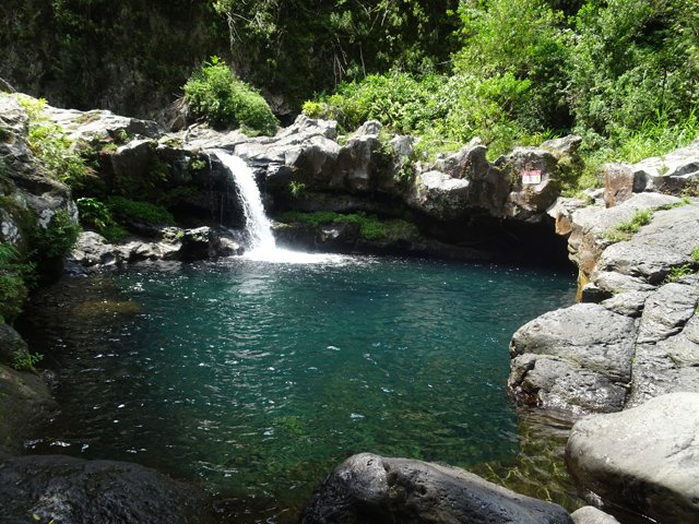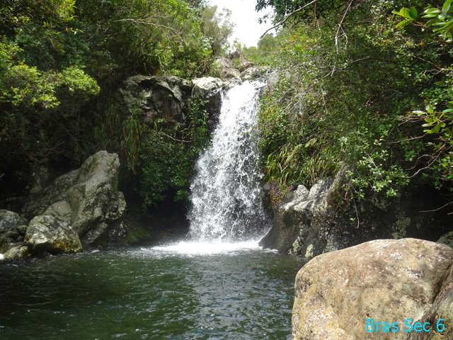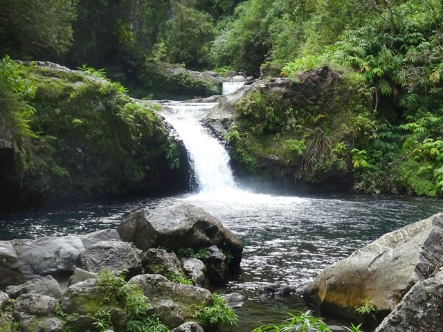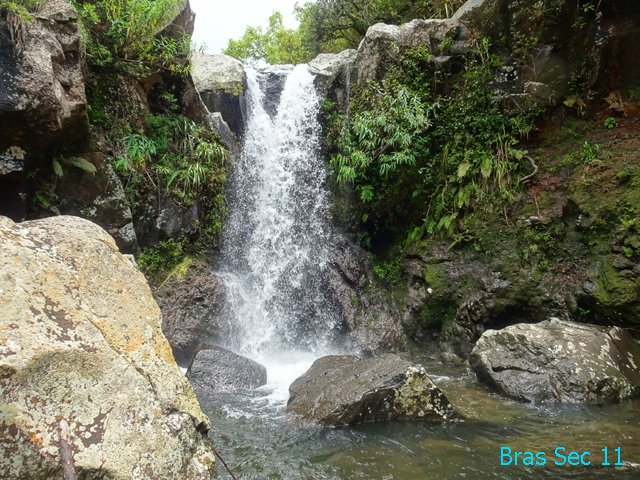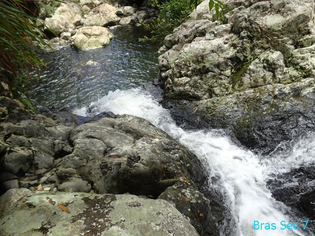 Cette minuscule cascade et son bassin se rencontrent lors de la traversée de la Ravine Henri Dijoux sur le sentier de la Chapelle en descendant vers le Bras Rouge. Impossible à manquer avec le bruit de l'eau.