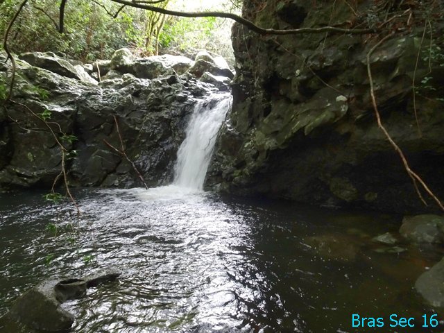 Petites chutes agréables, l'une en amont, l'autre en aval remplissant un grand bassin sombre. La ravine n'est pas toujours en eau.