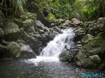 Fin voile d'eau claire tombant en paliers depuis les hauteurs de l'îlet abandonné du Bras Rouge sur la Ravine Ferrière. Le petit bassin éclaboussé est situé près du gué permettant de traverser la ravine. A réserver pour un bain un jour de forte chaleur.