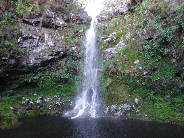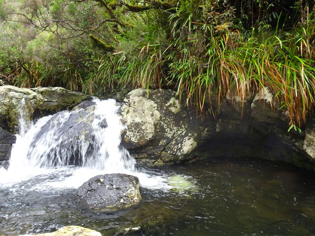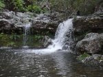 Cette fine cascade tombe à deux pas du sentier. On ne pas se baigner dans le bassin mais il est possible de se doucher sous la fine chute.