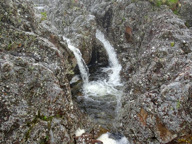 Toutes ces petites chutes ou toboggans se rencontrent pour se rendre au pied de la cascade de la ligne au-dessus.