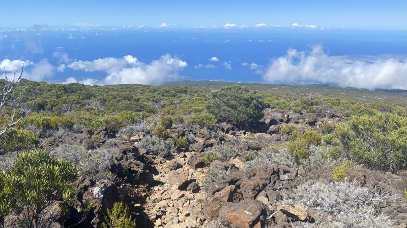 Randonnée très fréquentée faite le 03/01/2026, sous le soleil, tout simplement magnifique (après une tentative avortée quelques jours auparavant, à cause de la pluie): de superbes vues sur Mafate et la Fournaise avant l'arrivée des nuages.