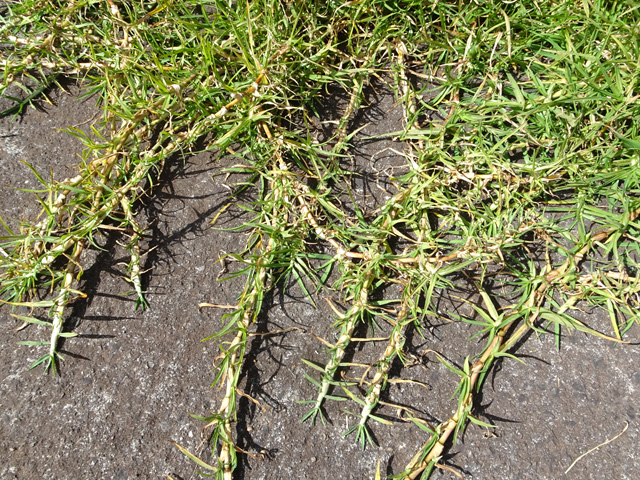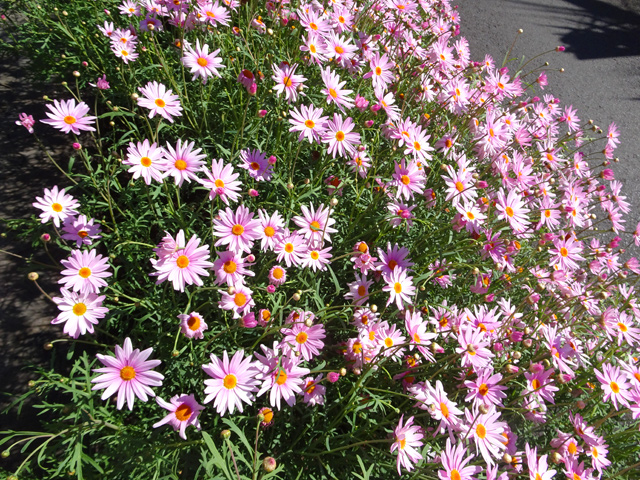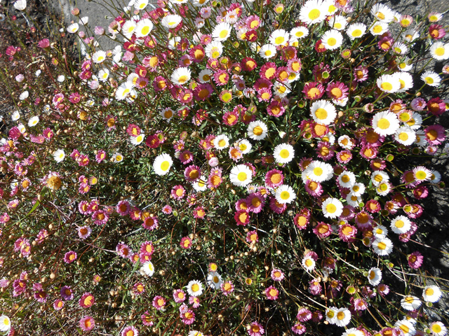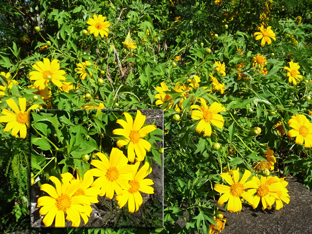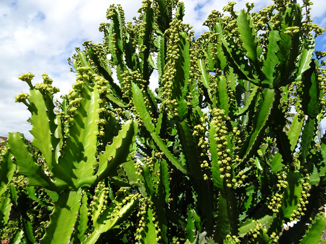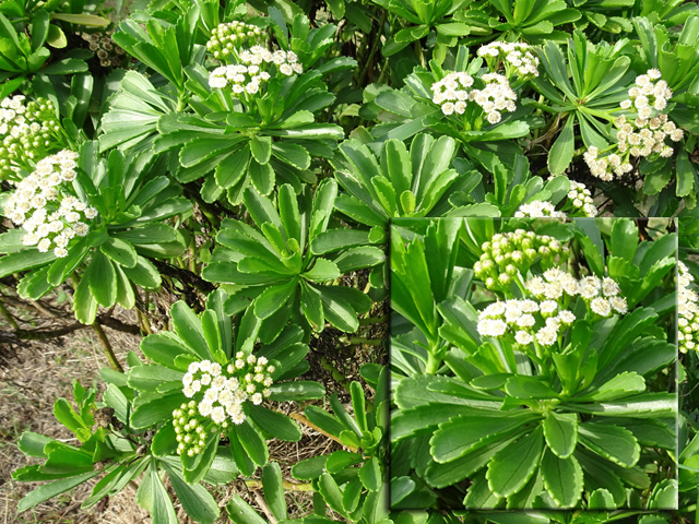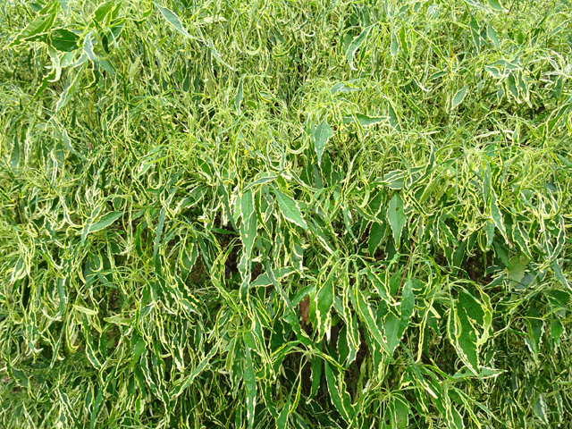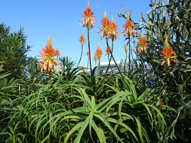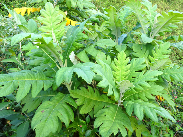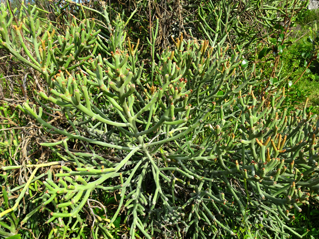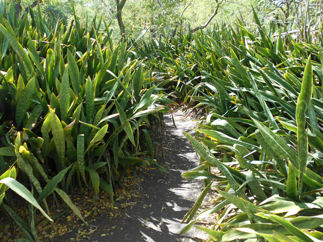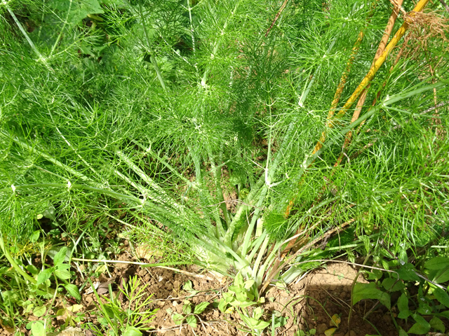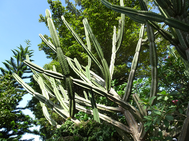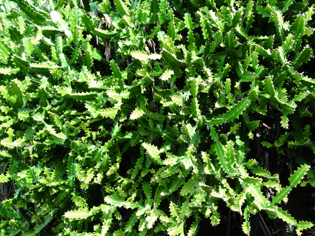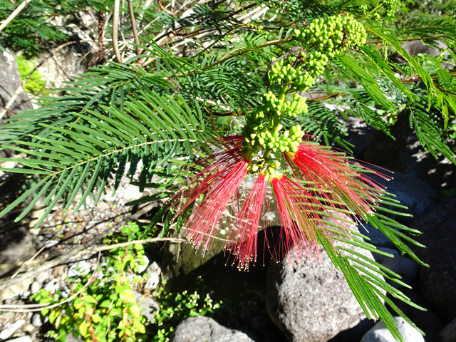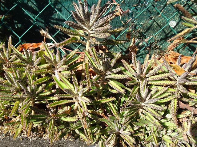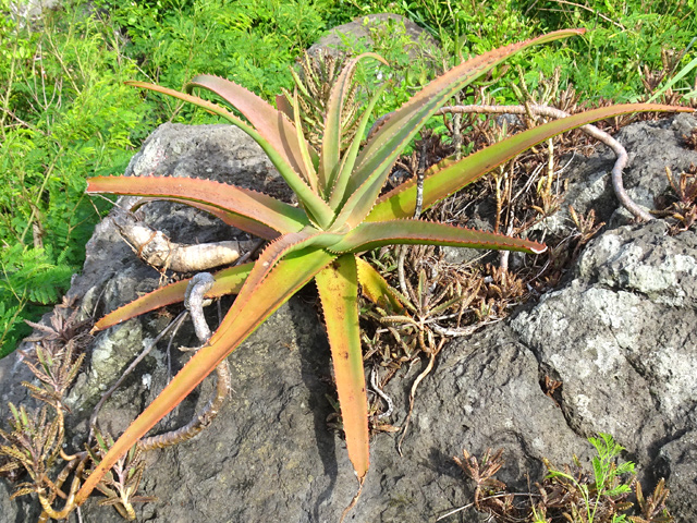 On le rencontre dans tous les parcs et jardins mais il s'est naturalisé et envahit toute l'île des fossés jusqu'aux remparts bordant les cascades. Il peut atteindre 80 cm et se multiplie facilement. Reconnaissable aux touffes vertes où il pousse serré.