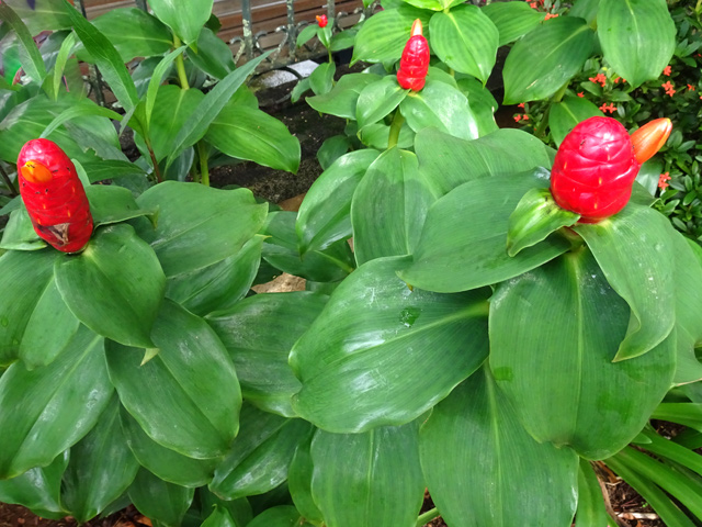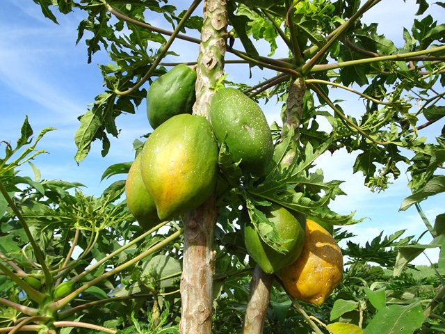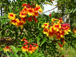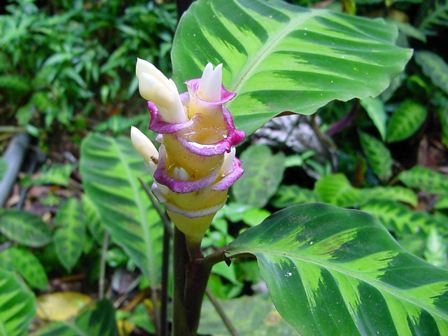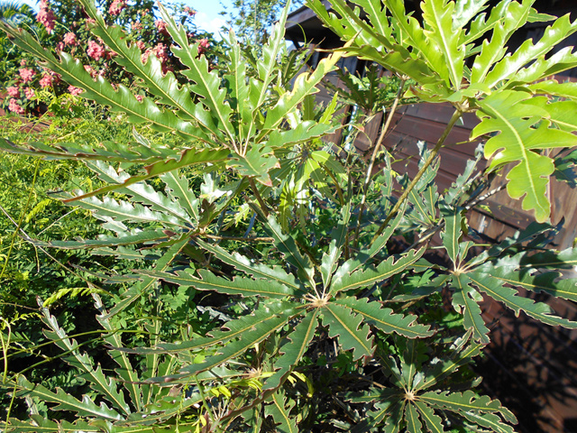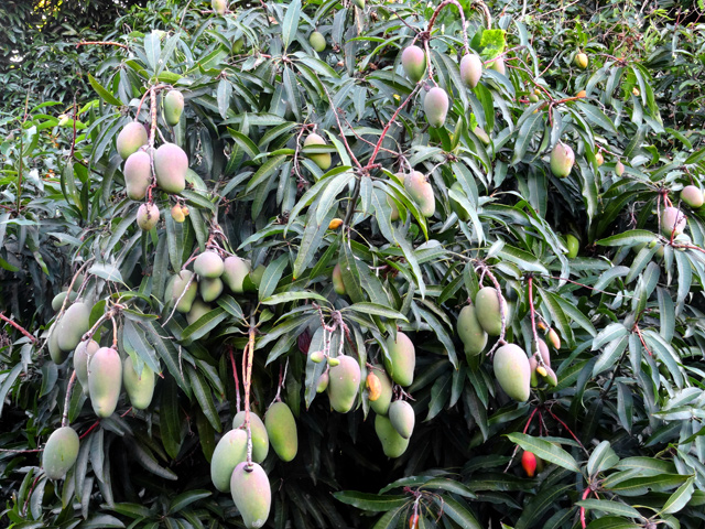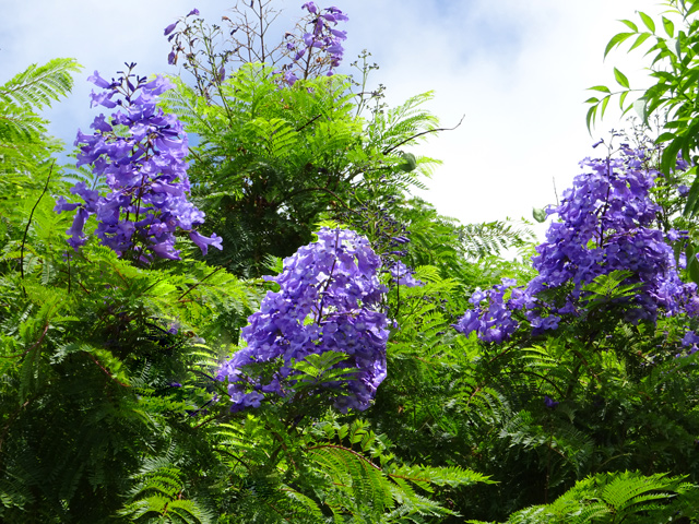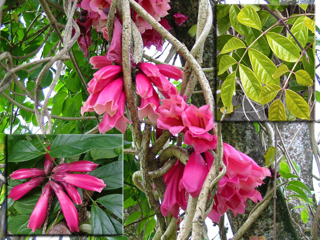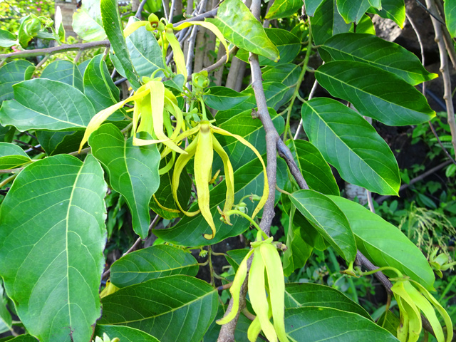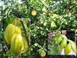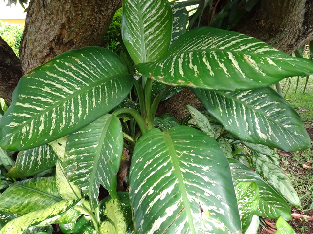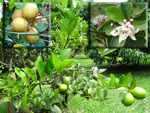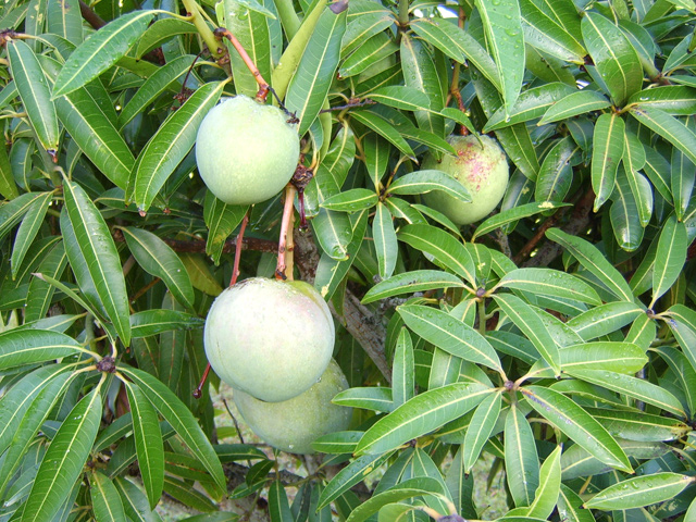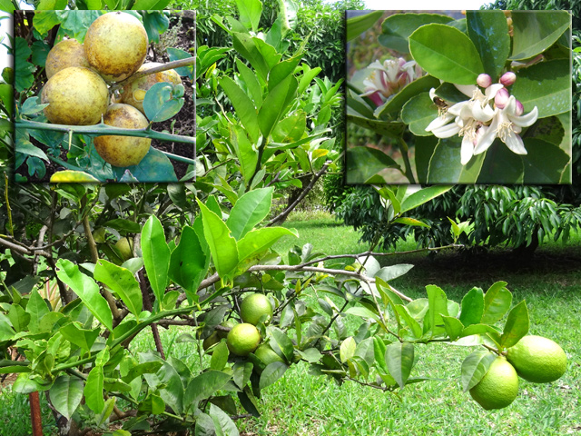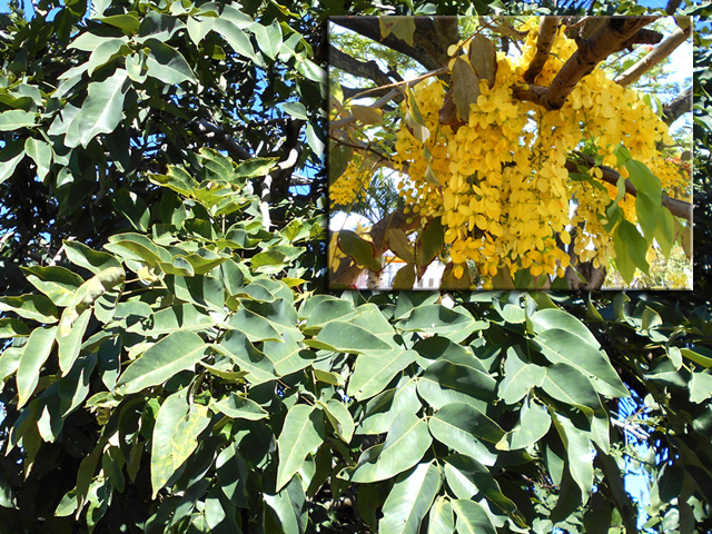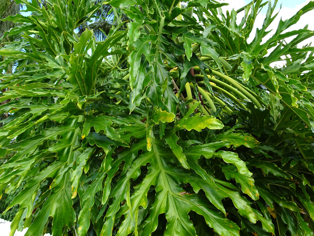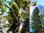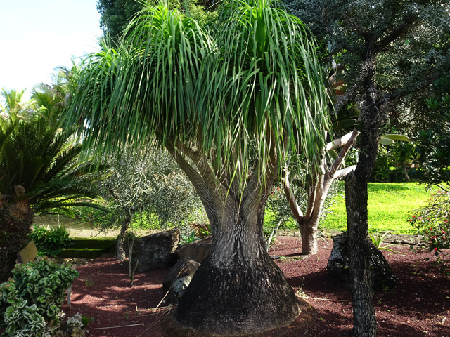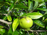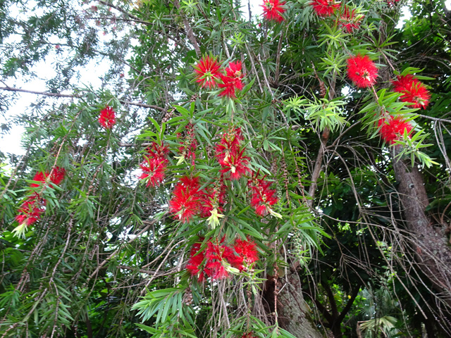 Un autre grand classique des régions tropicales qu'on trouve encore près des anciennes grandes demeures où il borde les allées. Il atteint souvent les 25 m. Les stries horizontales du tronc proviennent de l'empreinte des anciennes feuilles.