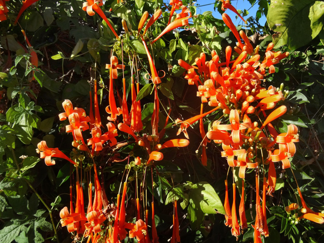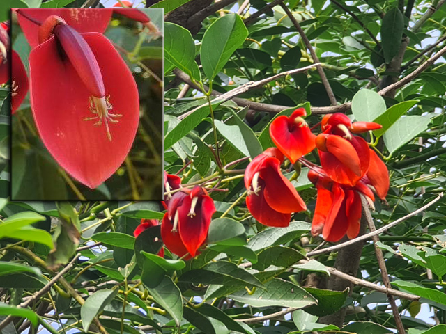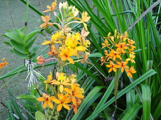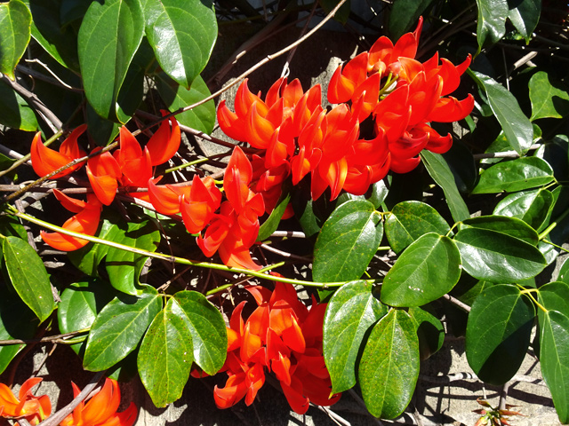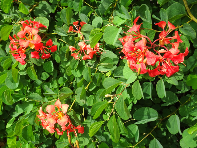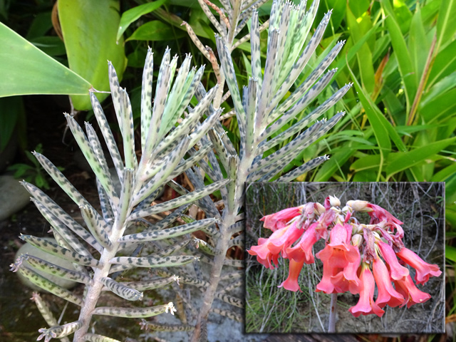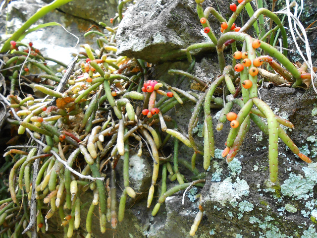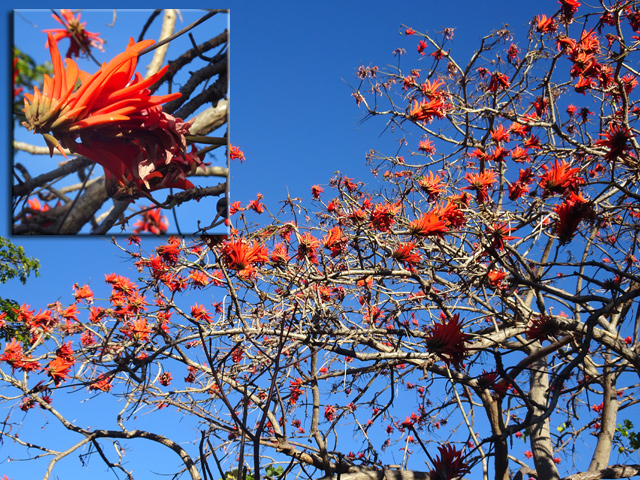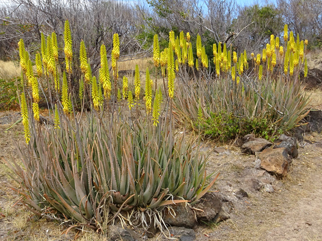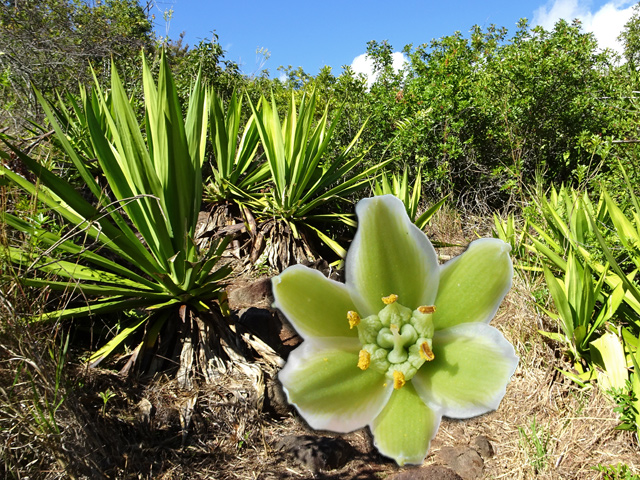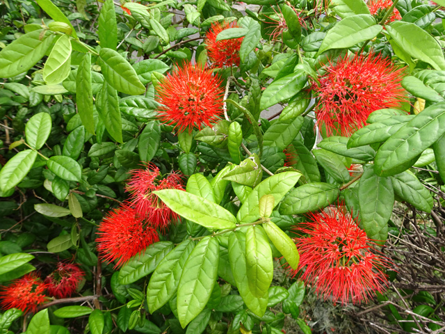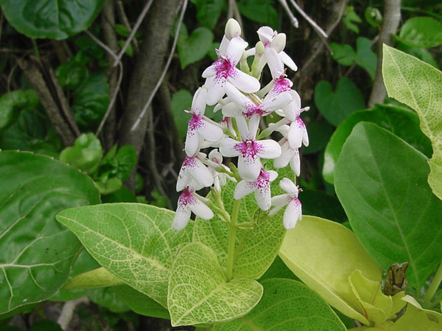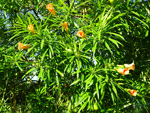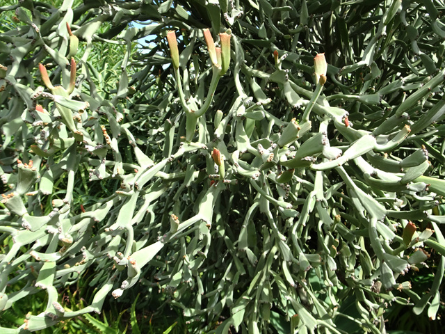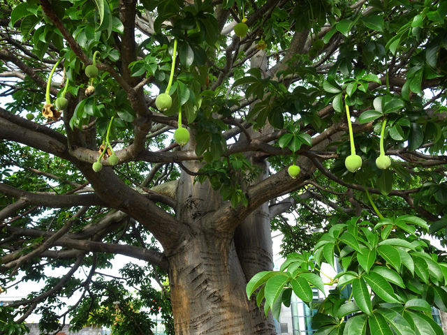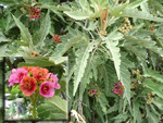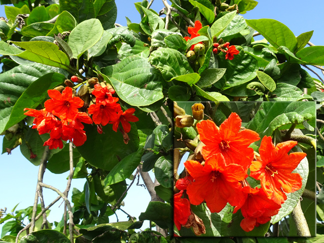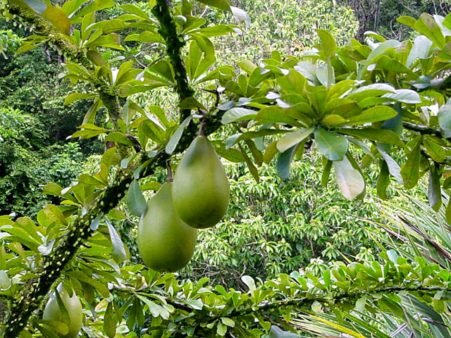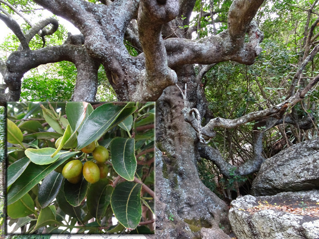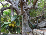 Petit arbre au tronc épais qui dépasse rarement 10 m. Endémique. Fleurs (orange) et fruits (pulpe poisseuse) sont regroupés en grappes directement sur les branches, là où ne pousse aucune feuille. Donnent avec le bois maigre les plus belles sculptures vivantes de l'île.