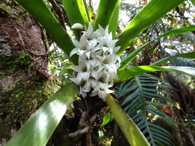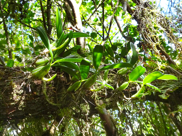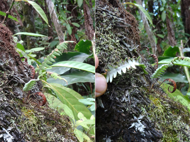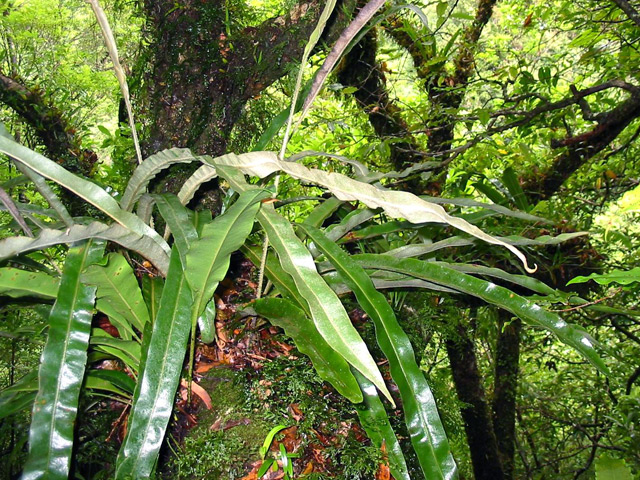 Plus facile à photographier sur les arbres où elle s'accroche en grosses touffes dans les forêts humides. Celle-ci, photographiée au sol représente presque une exception. Leur fronde peut atteindre les deux mètres de longueur