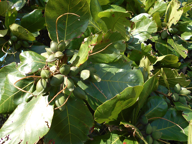Cet arbre endémique très rare a pratiquement disparu de l'île, en raison de ses qualités comme matériau de construction. Les feuilles sont regroupées en haut des branches. Ses fruits, plus gros que des noix donnent une seule graine très dure.