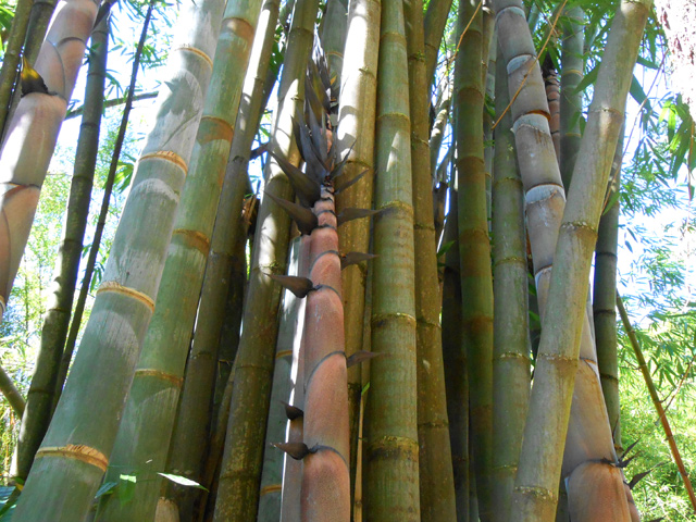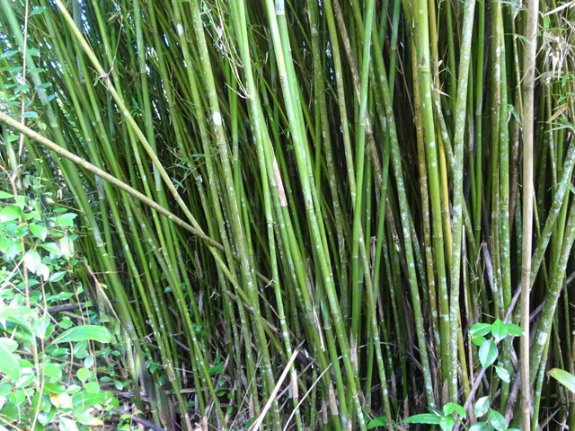 Le bambou géant ne se décrit pas tant il est facile à repérer dans toutes les régions de l'île. Il peut atteindre 20 mètres de hauteur et pousser en touffes énormes de plusieurs mètres de diamètre. Sa croissance est assez rapide dans les régions humides.