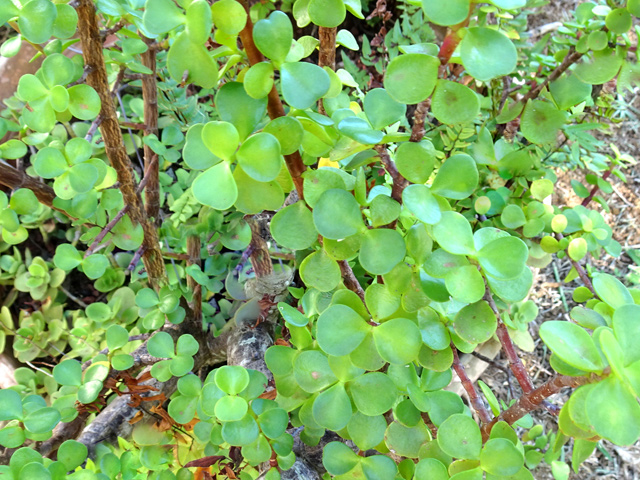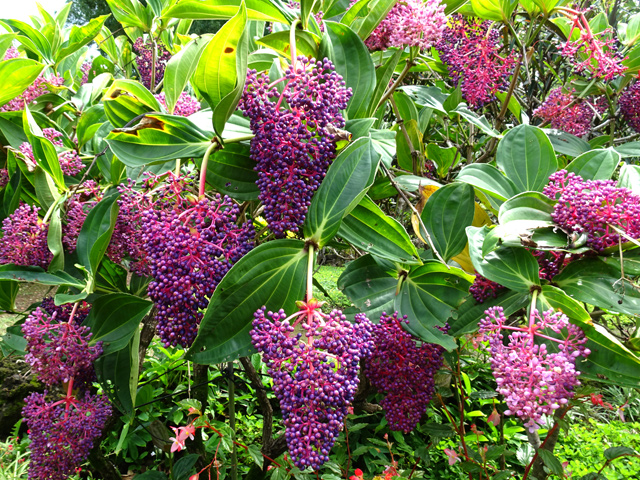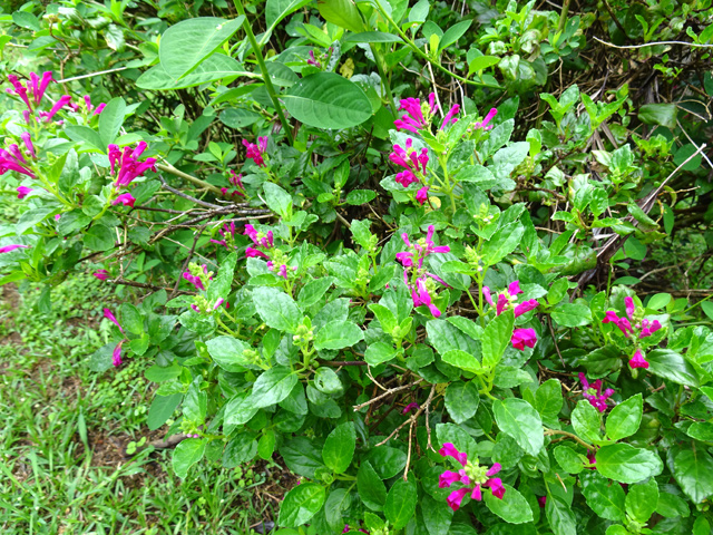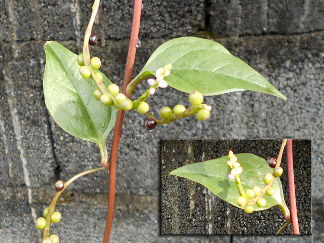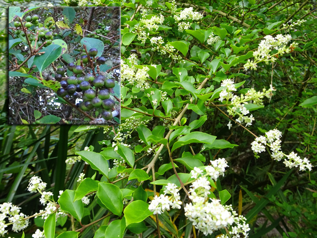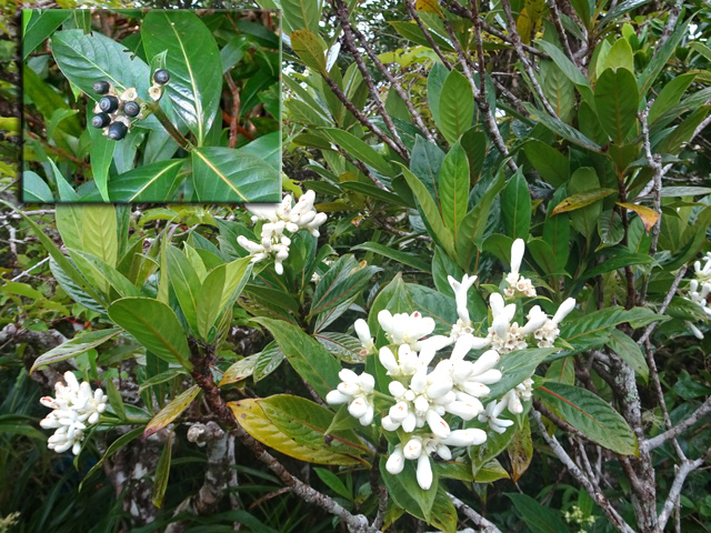 Arbuste de 4 m, endémique, à l'écorce grise et lisse, vivant un peu partout sur l'île. Feuilles opposées. Petites fleurs blanches à 4 pétales, en longues grappes pendantes jusqu'à 20 cm. Fruits également en grappes, bleu très foncé, presque noir à maturité. Ressemble au raisin de la vigne. Utilisé en médecine traditionnelle.