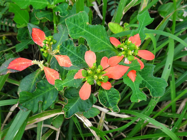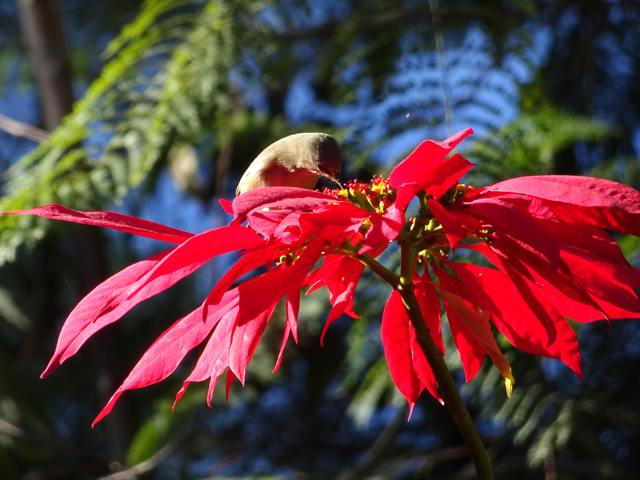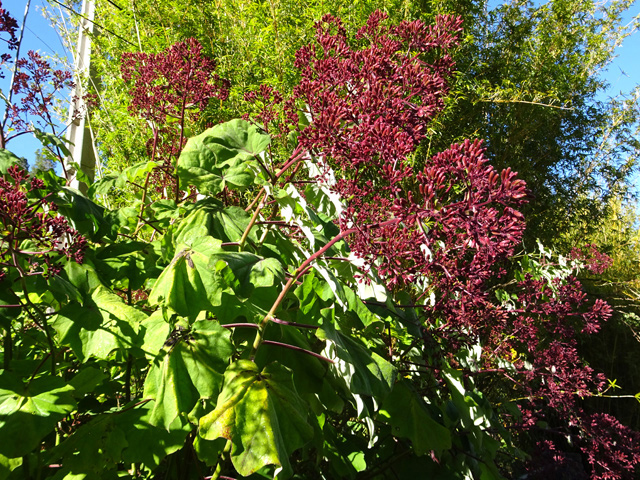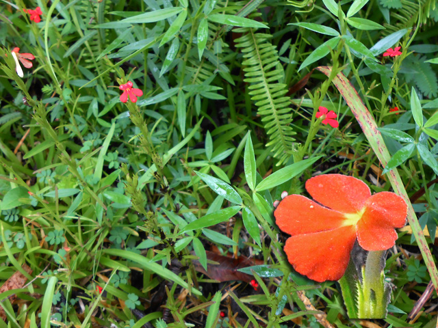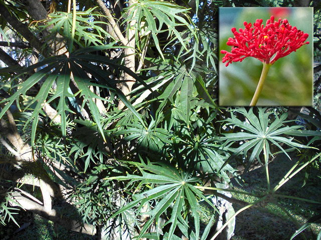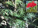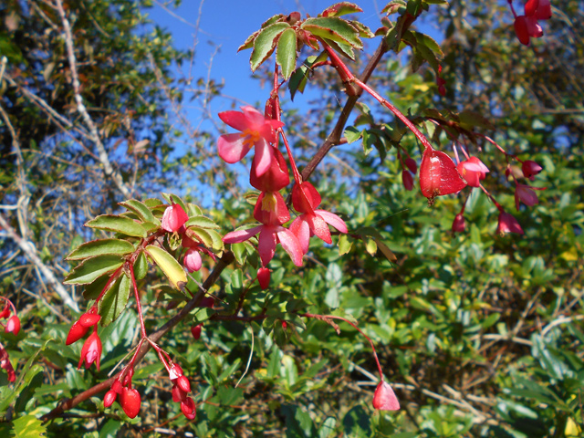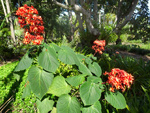 Espèce endémique des Mascareignes, de plus en plus rare, photographiée ici à la Grotte des Premiers Français. Il doit son nom à sa sève rouge. Le pied juvénile est très différent de l'adulte. Les feuilles adultes sont composées de 3 à 5 folioles aux nervures marquées.