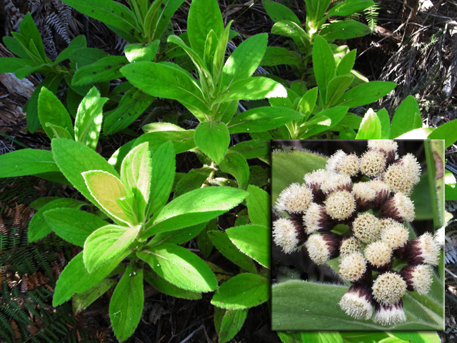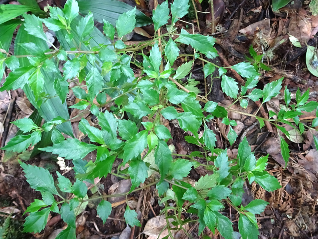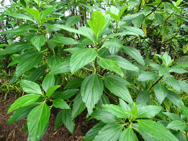 Arbuste endémique facile à reconnaître par sa petite taille (maxi 4 m) et à ses feuilles opposées caractéristiques, dentelées en forme de cœur. Commun dans les ravines des forêts humides de moyenne altitude de 600 à 1400 m. Minuscules fleurs groupées sur des tiges, elles-mêmes groupées. Ses fruits sont des akènes.