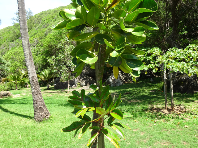 Inutile de le présenter. Ses noix pouvant flotter pour aller germer à des milliers de km, il est répandu sur l'ensemble des régions chaudes du globe. Avec nos côtes rocheuses, l'implantation a été rendue plus difficile. C'est donc cultivé ou en bordure de route qu'on le découvre sur l'Île.