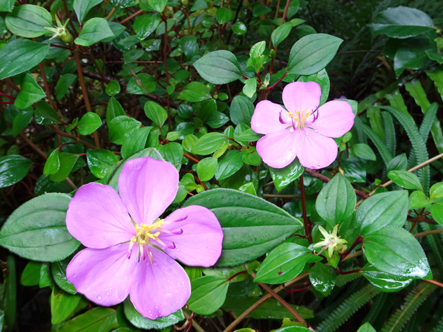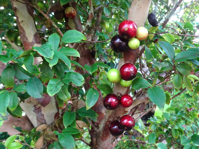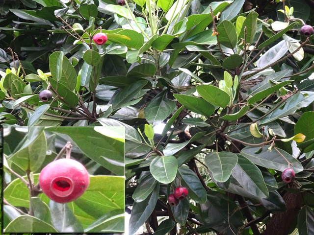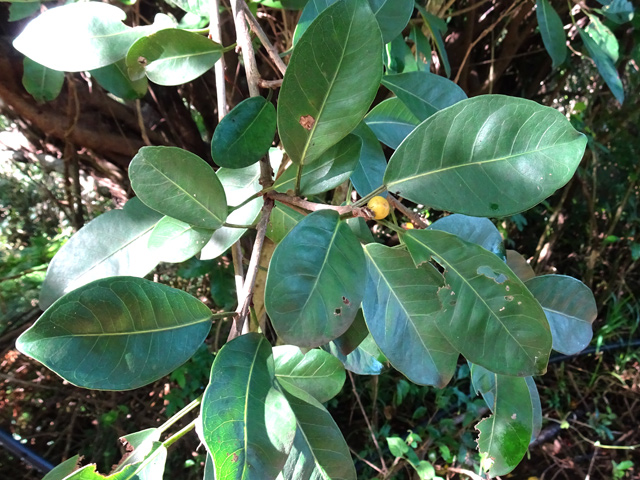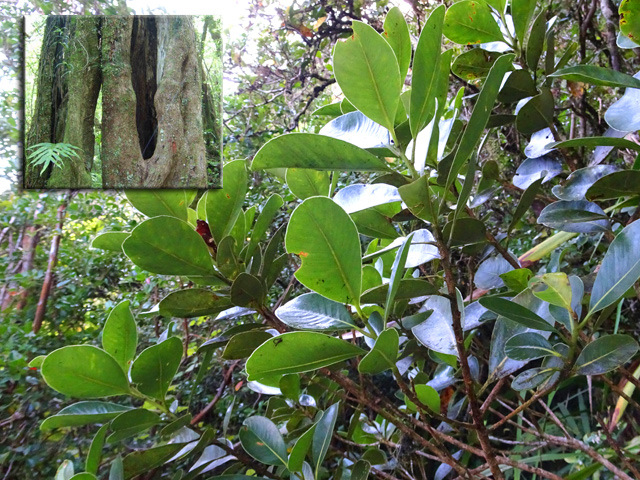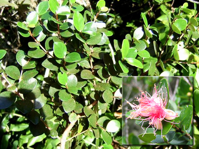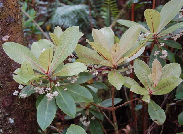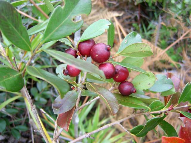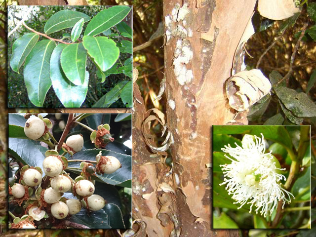Très commun entre 200 et 1500 m, cet arbre endémique peut atteindre 10 m. Ses jeunes feuilles sont d'un beau vert, alors que les feuilles adultes sont épaisses et coriaces, sans nervure. Petites fleurs rosées à 4 pétales, au cœur rouge avec de longues étamines. Les fruits sont de petites baies en forme d'olive.
