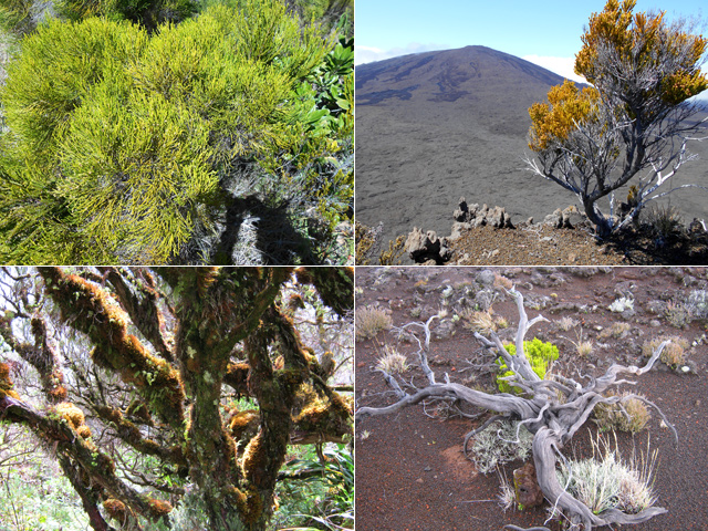 Petit arbre endémique vivant en altitude aux alentours des 2000 m entre les zones arides et forêts de bois de couleurs des Hauts. Fréquent près du volcan. Ses fleurs sont d'un beau jaune et ses gousses, comme ses feuilles composées, recouvertes d'une courte pilosité soyeuse.