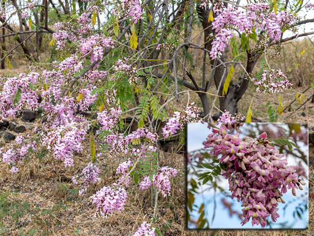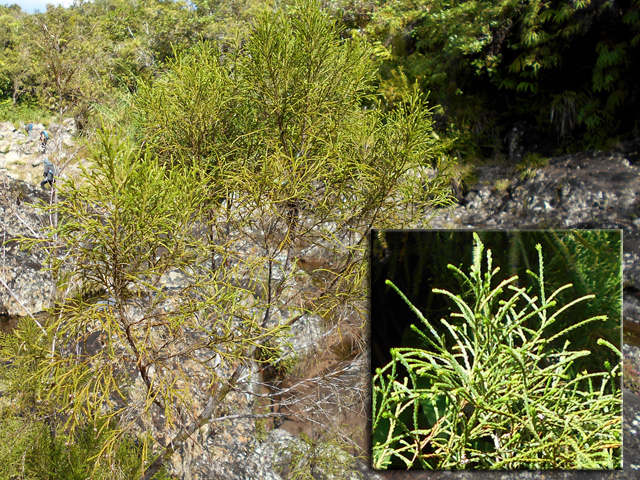 Très commun entre 1200 et 2000 m, cet arbre endémique au port massif, parfois tortueux, est utilisé en ébénisterie. A partir de 2000 il devient arbustif. Les feuilles adultes diffèrent des juvéniles. Fleurs jaune pâle. Fruit en gousse. Les graines naissent après un incendie.