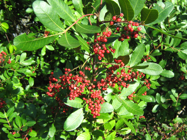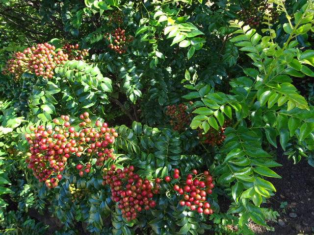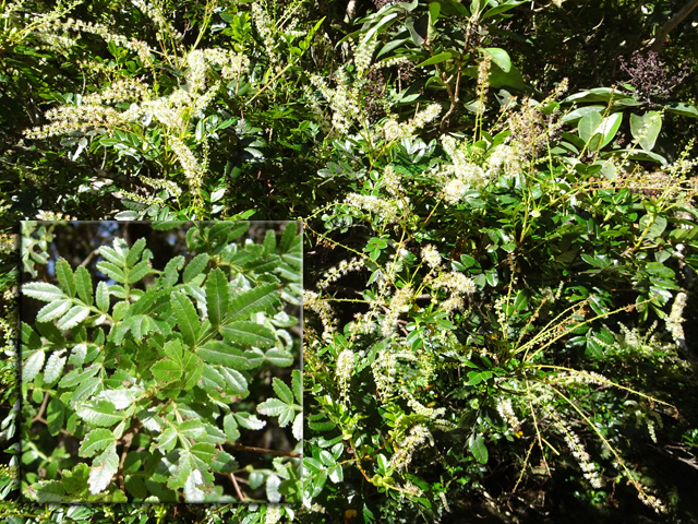 Espèce endémique très protégée car très prisées des tisaneurs. Les feuilles, magnifiques quand elles sont juvéniles, sont très grandes une fois adultes. Elles comportent jusqu'à une douzaine de folioles aux nervures rouges bien marquées. Les petites fleurs sont réunies en racèmes. Les graines ressemblent au poivre, d'où son nom vernaculaire.