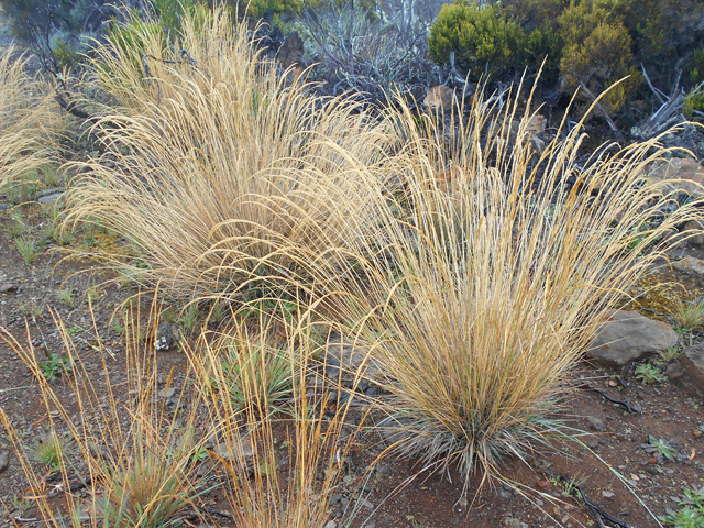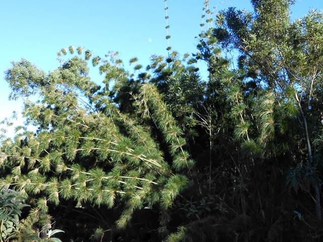 Espèce de bambou endémique de La Réunion. Il forme des touffes de feuilles échelonnées le long de la tige tous les 30 ou 40 cm. Généralement associé au tamarin des Hauts. Très nombreux en forêt du Tévelave.