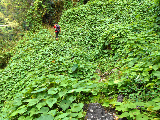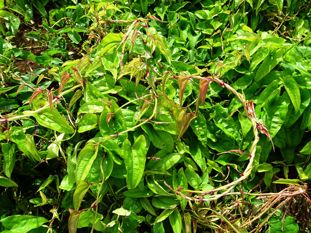 Très commune sur l'île, elle envahit les zones dénudées jusqu'à 1000 m et peut atteindre plus de trois mètres en sous-bois car elle grimpe pour chercher la lumière. Se reproduit par son rhizome. Elle bouche très rapidement les sentiers si quelques coups de sabres ne sont pas donnés régulièrement.