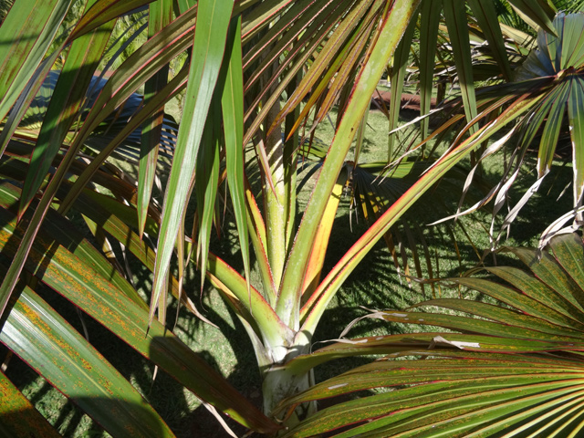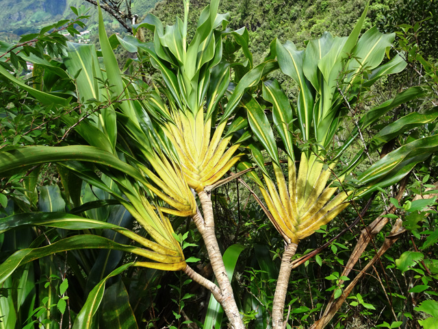 Plus commun dans le Sud sauvage, ce latanier a longtemps été utilisé pour ses larges feuilles servant à recouvrir les toitures. Il possède la particularité de présenter des pieds mâles et femelles. Cet endémique de La Réunion est en danger critique d'extinction en milieu naturel.