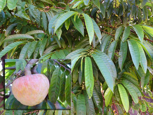 Grand arbre au bois dur et à l'écorce claire pouvant atteindre 20 m et vivant jusqu'à 1000 m. Ses feuilles sont simples, relativement grandes, ovales, coriaces et contenant du latex blanc. Les fruits, de la taille d’une petite pomme, contiennent deux graines et une chair blanche sans saveur.