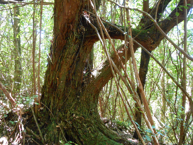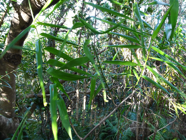 Lors des randonnées, il est fréquent de rencontrer de grosses touffes de ce bambou fin qui aime les endroits frais et ombragés. On le voit aussi sur l'emplacement d'anciens îlets. Comme le précédent, il est utile pour retrouver des emplacements habités au siècle précédent.