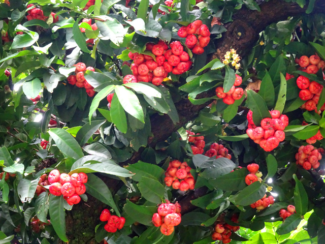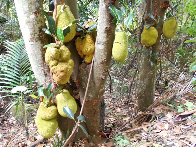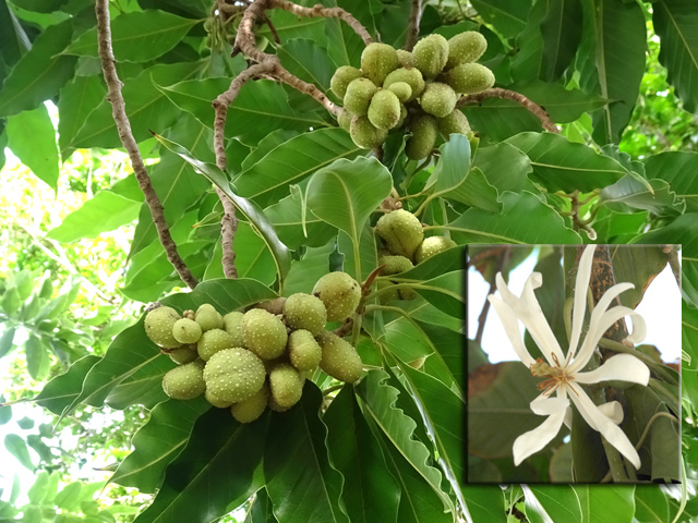 Un arbre qui dépasse facilement les 15 m, reconnaissable par ses superbes fleurs ou ses fruits comestibles roses ou rouges qui poussent à même le tronc. Assez rare, mais fréquent à Bon Accueil (Les Makes) ou dans les forêts du Sud sauvage en-dessous de 400 mètres. Le bois, utilisé en construction, a permis sa raréfaction.