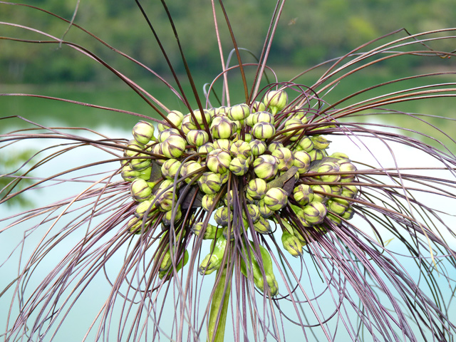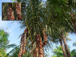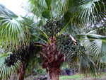 Commun en Afrique de l'ouest, on rencontre assez peu ce très haut palmier aux très longues feuilles et aux fruits impressionnants. La fleur, ainsi que le fruit composé de longues grappes de graines dures signent la mort de l'arbre qui ne fleurit qu'une fois.