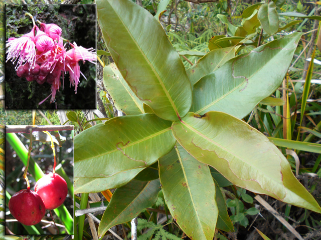 Cet arbre, endémique de La Réunion et de Maurice vit en forêt de moyenne altitude et peut atteindre 20 m. Il se reconnaît facilement aux fruits qu'il produit ressemblant à des petites pommes. Magnifiques fleurs roses à 4 pétales et très longues étamines poussant en fin de rameau ou sur le tronc.