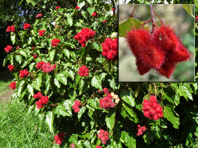 Cette espèce de 6 à 8 m est endémique à La Réunion et à Maurice. Assez commune entre 300 et 1200 m en forêt humide. La jeune feuille porte une nervure rouge. Fleur hermaphrodite d'un vert très pâle. Le fruit, une capsule de 4 cm s'ouvre en trois parties et laisse voir la pulpe rouge orangé.
