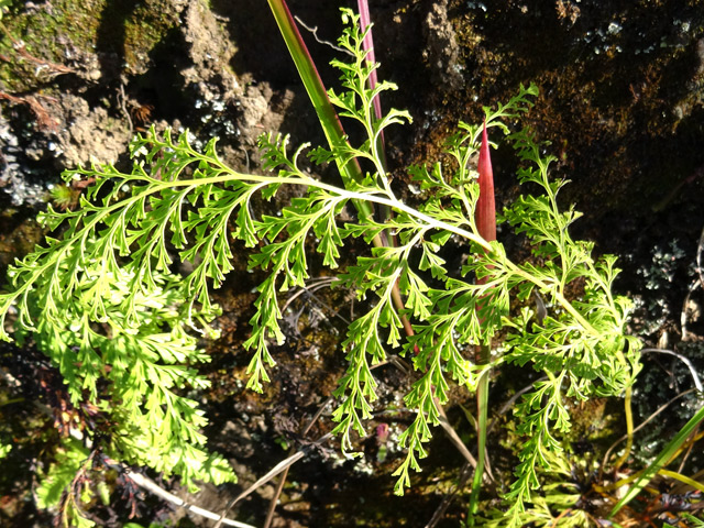 Cette élégante fougère, photographiée à Cilaos sur un sol pauvre et sans autre végétation montre que cette espèce peut s'adapter à plusieurs milieux. Elle ne dépasse pas les 30 cm de hauteur.
