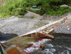 Le barrage du Bras de la Plaine et l'Îlet Tata depuis le Pont d'Yves