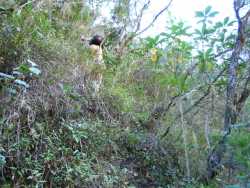 La pierre gravée du Tapcal depuis l'Îlet à Cordes et le Bras l'Eustache