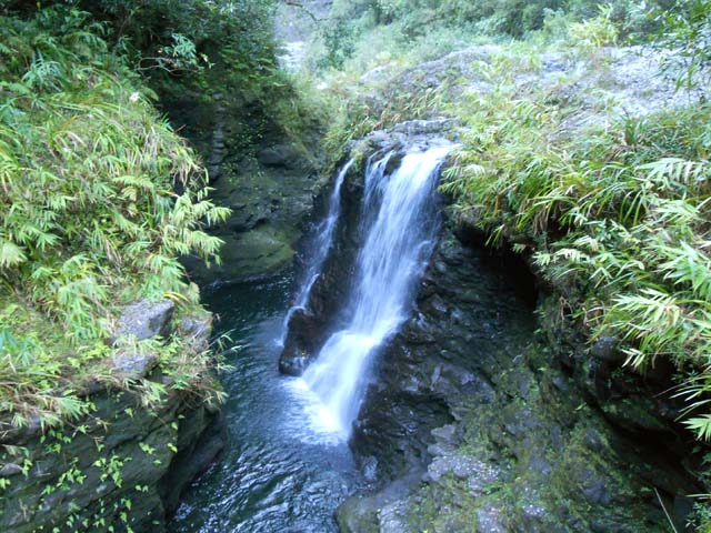 Cette petite chute, située sur la Ravine Blanche, est la dernière d'une longue série de 600 mètres avant de se jeter dans le Bras de Caverne. Impossible à approcher en raison du courant du Bras de Caverne à cet endroit.