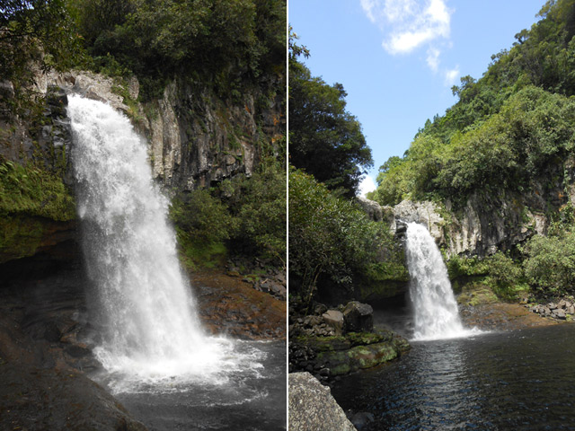 Deux randonnées permettent de voir ce bassin et sa cascade. boucle qui escalade plus tard la falaise pour revenir à la Rivière du Mât.
