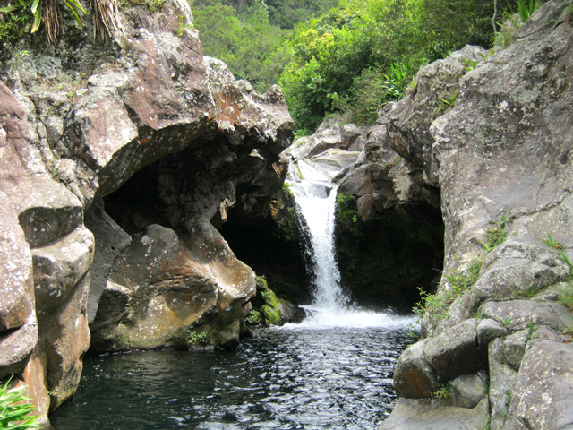 Cet endroit magique peut rivaliser sans problème avec certains coins de la Rivière des Marsouins ou Sainte Suzanne. Il regroupe en 20 mètres une chute, des grottes et une arche naturelle. A ne pas manquer lors de la visite au Voile de la Mariée.