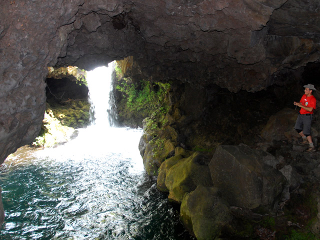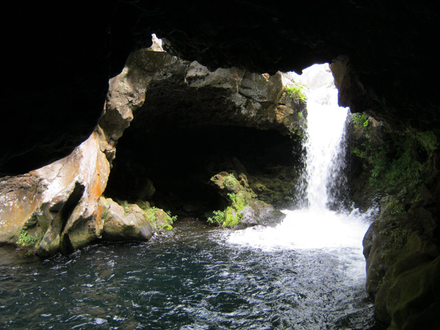 Il suffit de dépasser Grand Bassin et se diriger vers le Voile de la Mariée. Au gué, prendre à droite et remonter les rochers jusqu'à cette cascade. Escalader la paroi de droite et visiter les grottes, arche naturelle ou le bassin pour le plaisir des yeux et des oreilles.