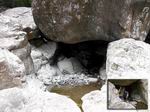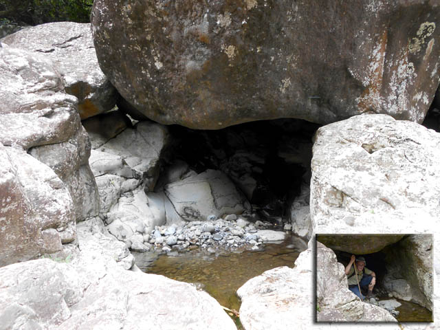 Insérée en tant que clin d'œil car la grotte n'est qu'un long abri sous un énorme rocher qui comporte également un petite retenue d'eau provenant certainement des écoulements. Impossible donc d'y poser un sac de couchage en cas de temps pluvieux au risque de l'alourdir !