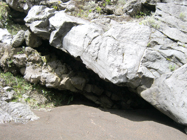 Cette grotte se rencontre en rive gauche de la ravine de Grand Sable en descendant de la Plaine des Sables pour rejoindre Grand Pays.