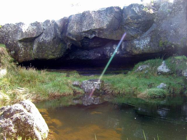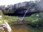 Caverne classique de la Réunion. Peu de place dessous. Un toit de basalte épais et une mare au pied