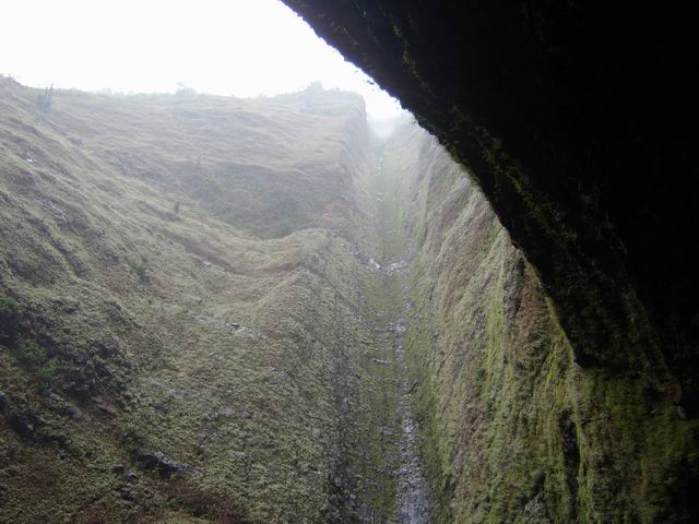 Grotte assez vaste pour abriter plusieurs personnes mais difficile d'y passer la nuit en raison de la proximité de la rivière.