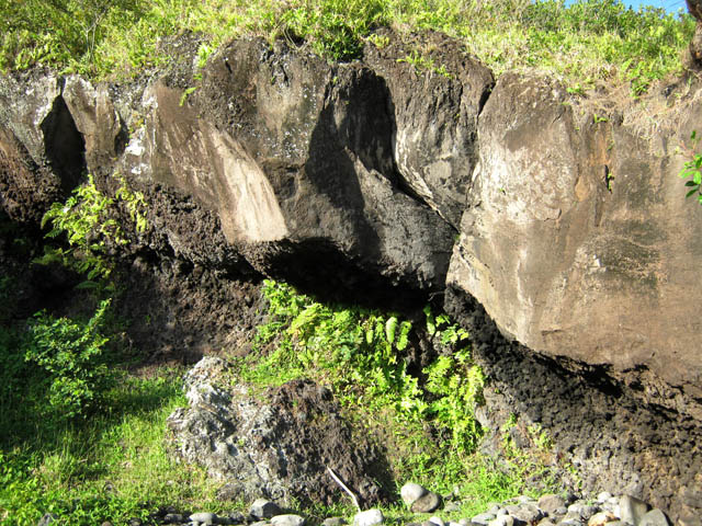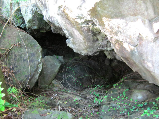Aucune grotte impressionnante mais de très nombreuses enfractuosités pouvant servir d'abri.