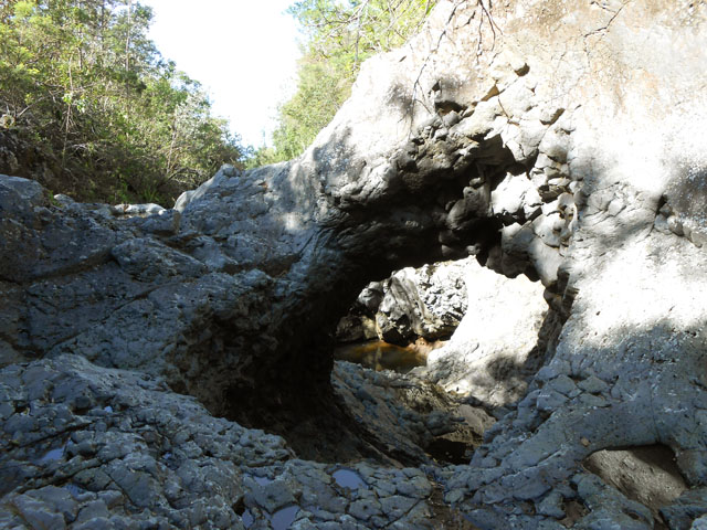 Magnifique spécimen qui surplombe une chute d'eau (s'il pleut uniquement) et une immense grotte. On peut la contourner mais gare à la chute.