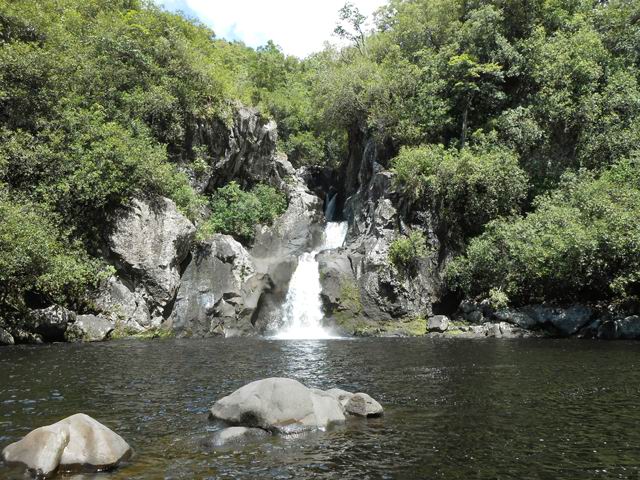 C'est le deuxième bassin rencontré lors de la sortie en boucle à partir de la Rivière du Mât. Le sentier descend au plus près du bassin et de sa cascade.