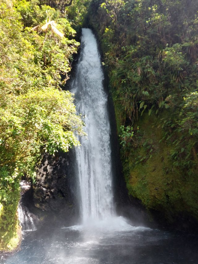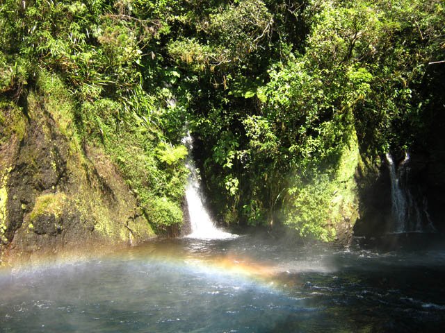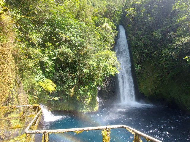 Belles chutes avec reflets irisés dus au soleil. Impossible de se baigner car toute l'eau des cascades est canalisée afin d'alimenter le barrage en aval.