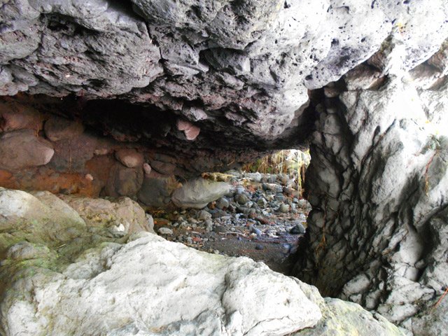 Arche très ordinaire creusée par les eaux en crues de la Ravine de Bois Blanc. C'est plus une cavité mal terminée qu'une arche telle que certaines présentées sur cette page.