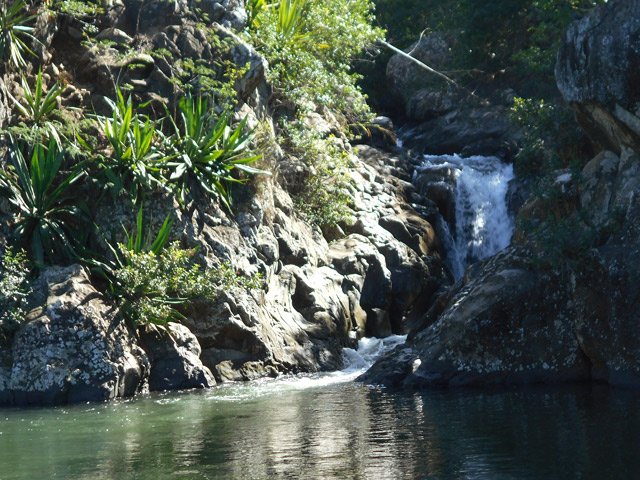 Dernière chute de la remontée de la Ravine Goyaves qu'on peut atteindre depuis les champs de canne à sucre de Roche Maigre.