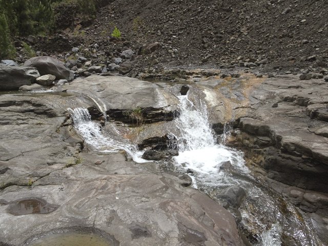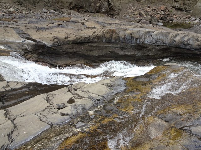 Descendre le lit de la Rivière des Galets à partir du sentier reliant la Nouvelle à Marla en direction du sentier de Grand Sable. Les deux toboggans son t impossible à manquer près de l'escalier en bois du GRR3 entre Trois Roches et Marla.