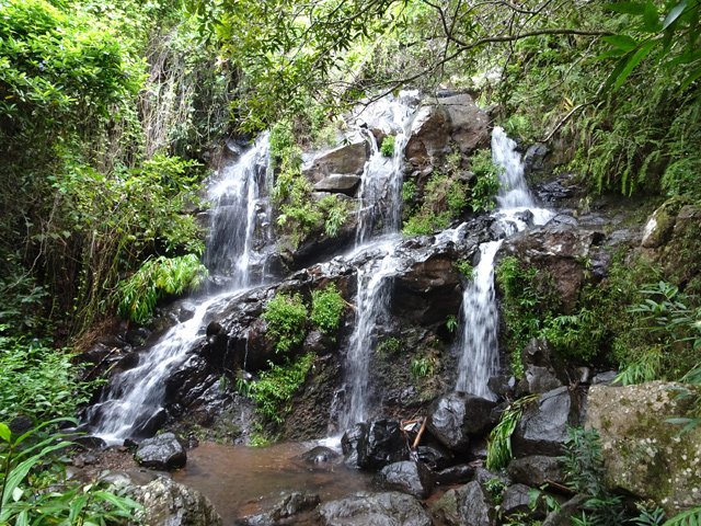 Modeste chute tombant des rochers de la ravine. Pas de bassin. La cascade n'est pas forcément toujours en eau