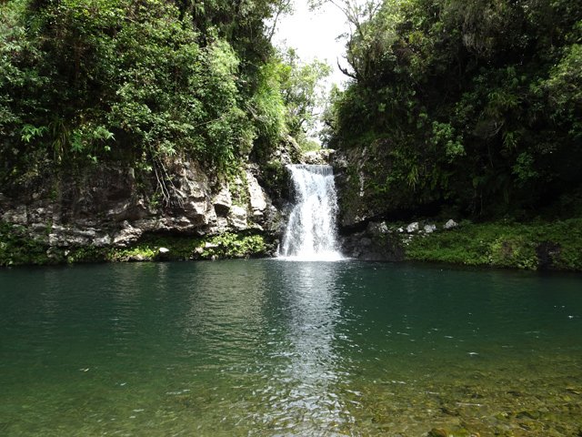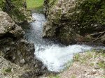 Le premier toboggan se déverse en cascade dans un large bassin. La cascade est freinée par un petit barrage. Les deux sont distants de quelques mètres mais nécessitent une belle remontée du rempart pour les rejoindre.